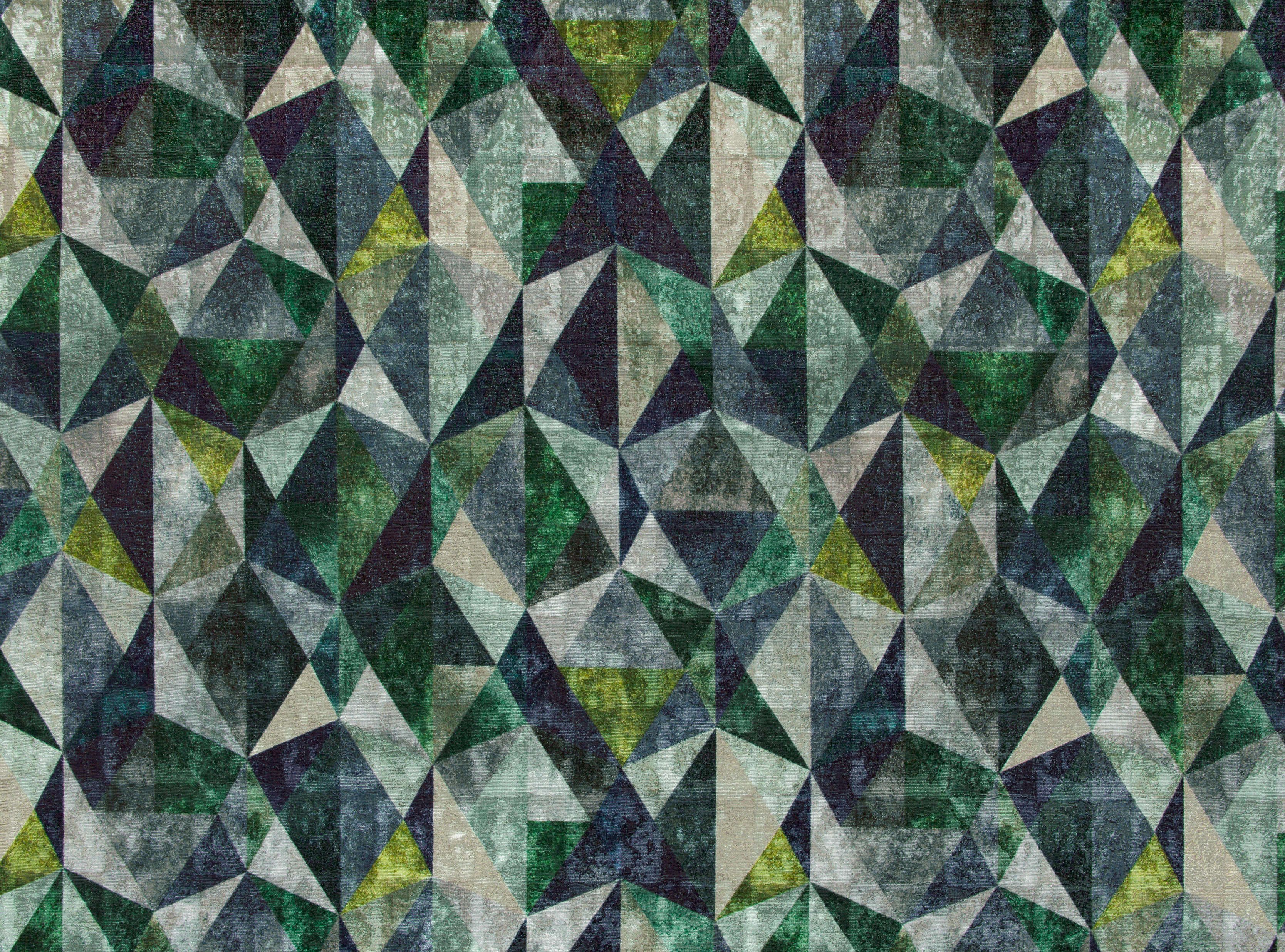 In charmanter Opulenz formen bunte Elemente den modernen geometrischen Velours mit üppiger Textur. Speziell gewebt als Schattengewebe, spielen neblige Gebilde herrlich mit dem Licht.