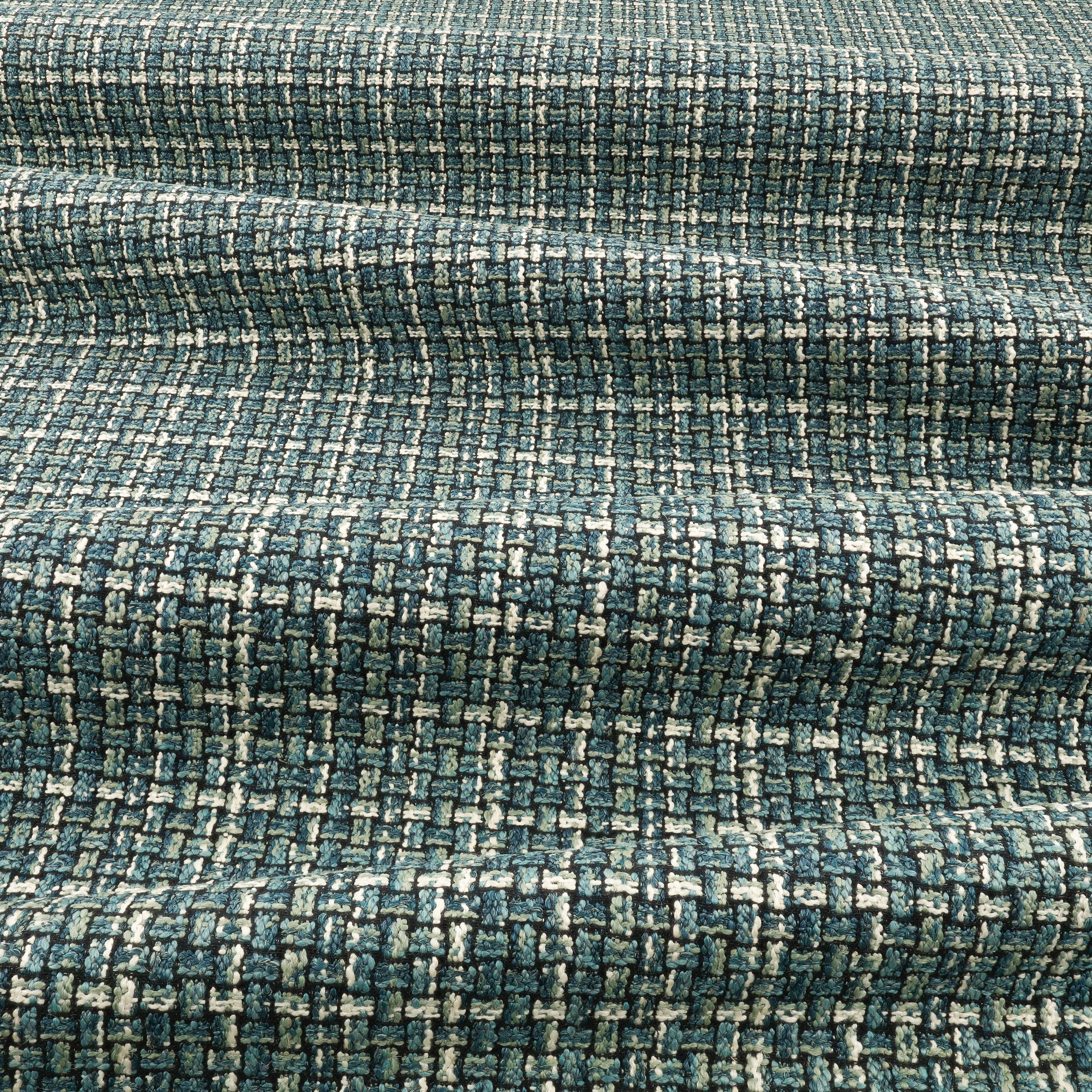 Taktil, grafisch, und mit einem zeitgemäßen Farbmix, gezwirnte Garne mit tonalen Variationen schaffen ein grob-strukturiertes Design, das an moderne Leinwandbindung erinnert.