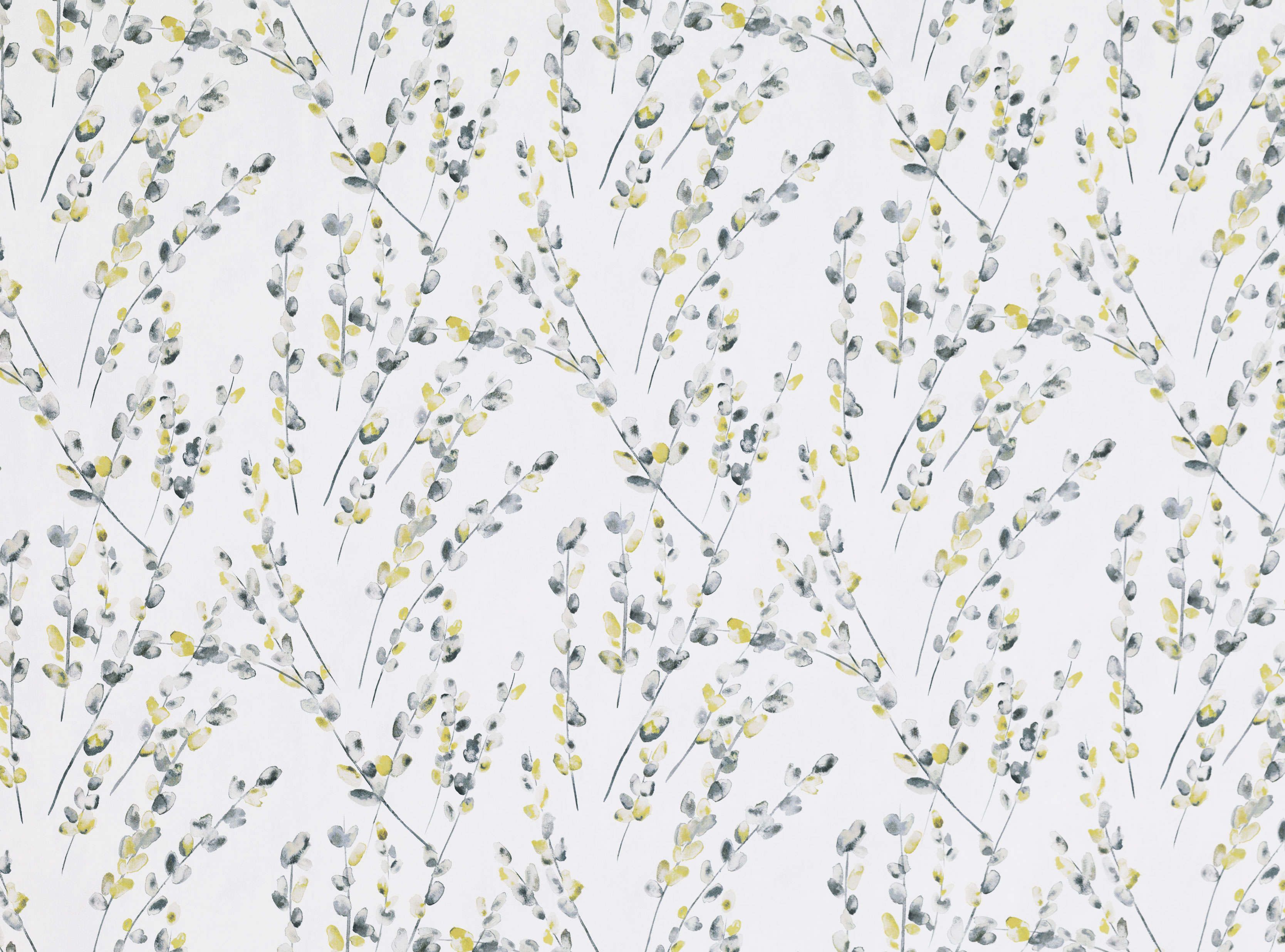 Malerisch verstreute Palmkätzchen bringen wunderbare Farbbewegung mit kräftigen, lebhaften Highlights auf weichen Baumwoll Satin.