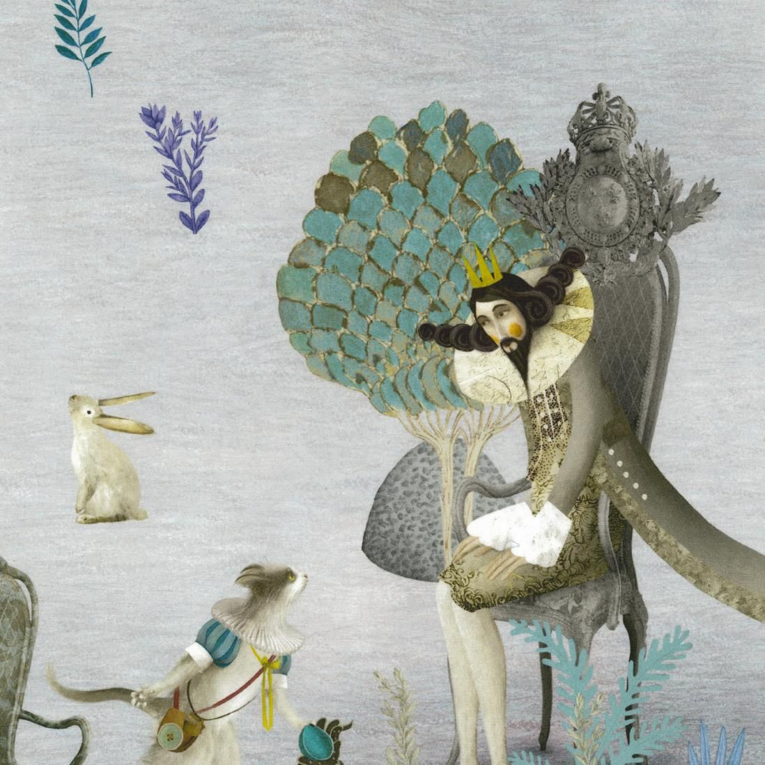 Die Illustration des mexikanischen Künstlers Gabriel Pacheco zu dem bekannten Märchen von Perrault. Fantasievolle Figuren schweben umher, in der Version Bonjour im warmen Licht der Sonne, in der Version Bonne Nuit im silbrigen Licht des Mondes. Geeignet für Polstergarnituren.
