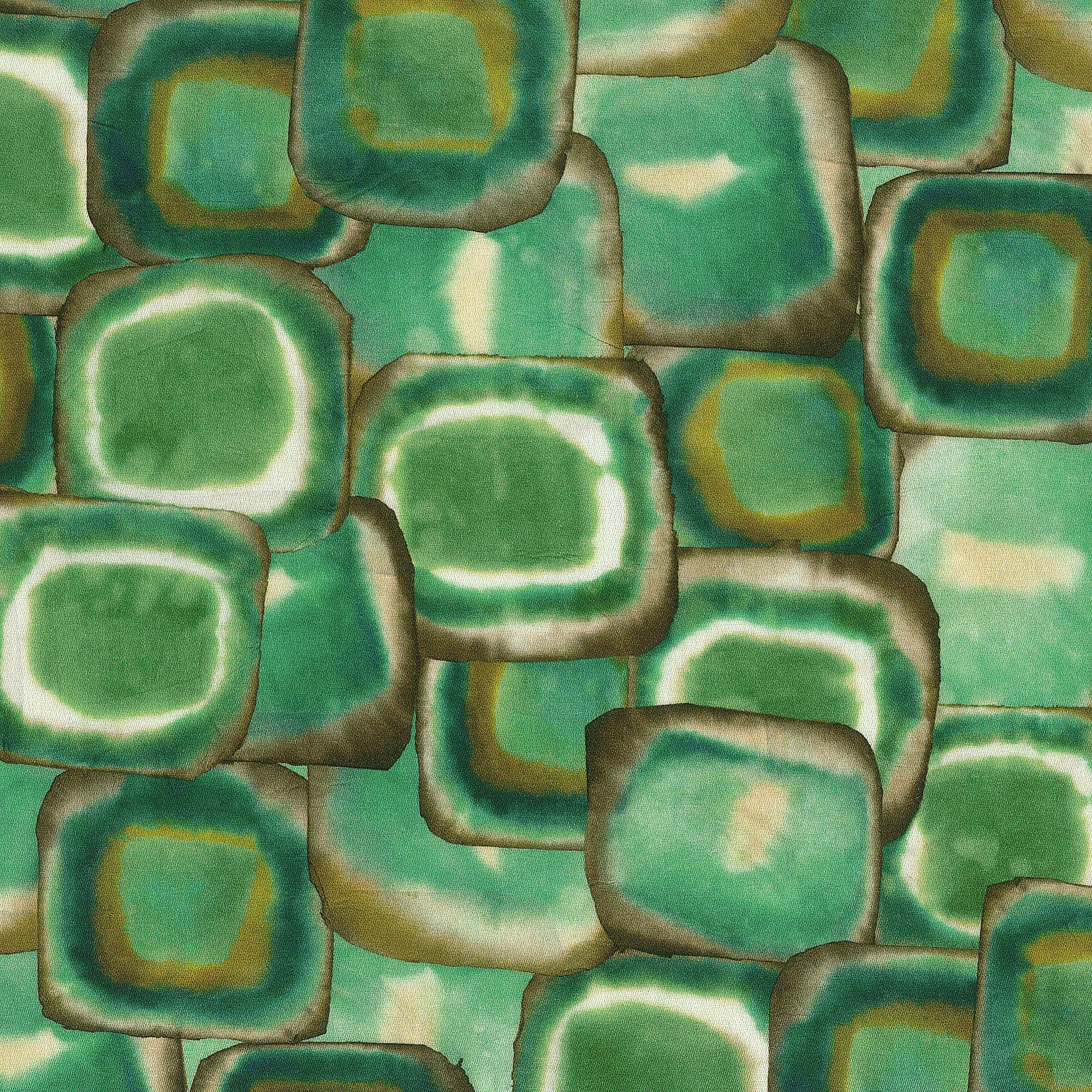 Gedruckter Stoff aus einem Aquarellmuster, das von den Edelsteinen inspiriert ist, die im Stoff zum Leben erweckt werden und farbige und vage geometrische Formen mit unregelmäßigen Grenzen erzeugen. Geeignet für Polsterung.
