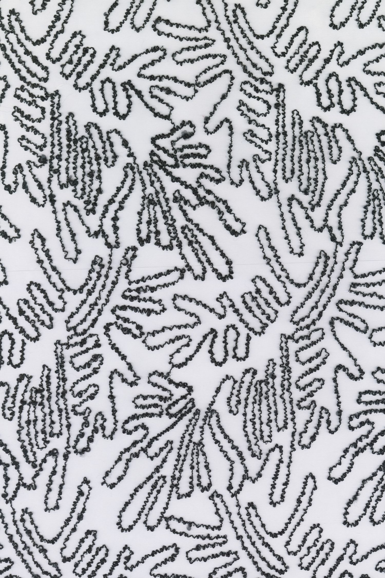 Verspielt-transparentes Lurex-Bouclégarn verleiht Corallium seinen subtilen Glanz. Wie ein Meereswesen scheint das organisch anmutende Muster auf dem fließenden, durchscheinendem Organza-Stoff zu tanzen und zu flimmern. Die Kombination aus strukturiertem Bouclégarn und Lurex in einer Doppelfaden-Sticktechnik verleiht der Stoffoberfläche eine lebhafte Haptik. Durch die farbliche Abstimmung zwischen Grundstoff und Bouclégarn wird die Leuchtkraft der Farben Icy Blue, Pistachio Green und Buttermilk, gedimmt. Wenn jedoch Licht hindurch scheint, wirken die Farben satter. Die graumelierte Variante erzeugt eine grafische Optik, in Snow White wirkt der Stoff frisch und in Midnight Blue besonders stimmungsvoll.