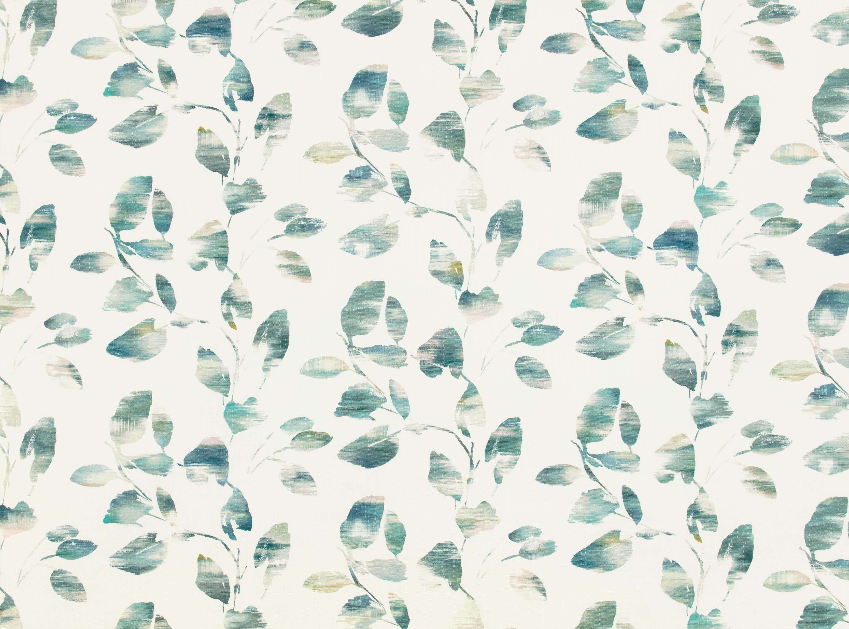 Elegantes Blattwerk mit Pinselstrichen, die sich zu faszinierenden Aquarelleffekten mit Variationen in Farbe und Lichtdurchlässigkeit vermischen, digital gedruckt auf geschmeidiger Baumwolle.