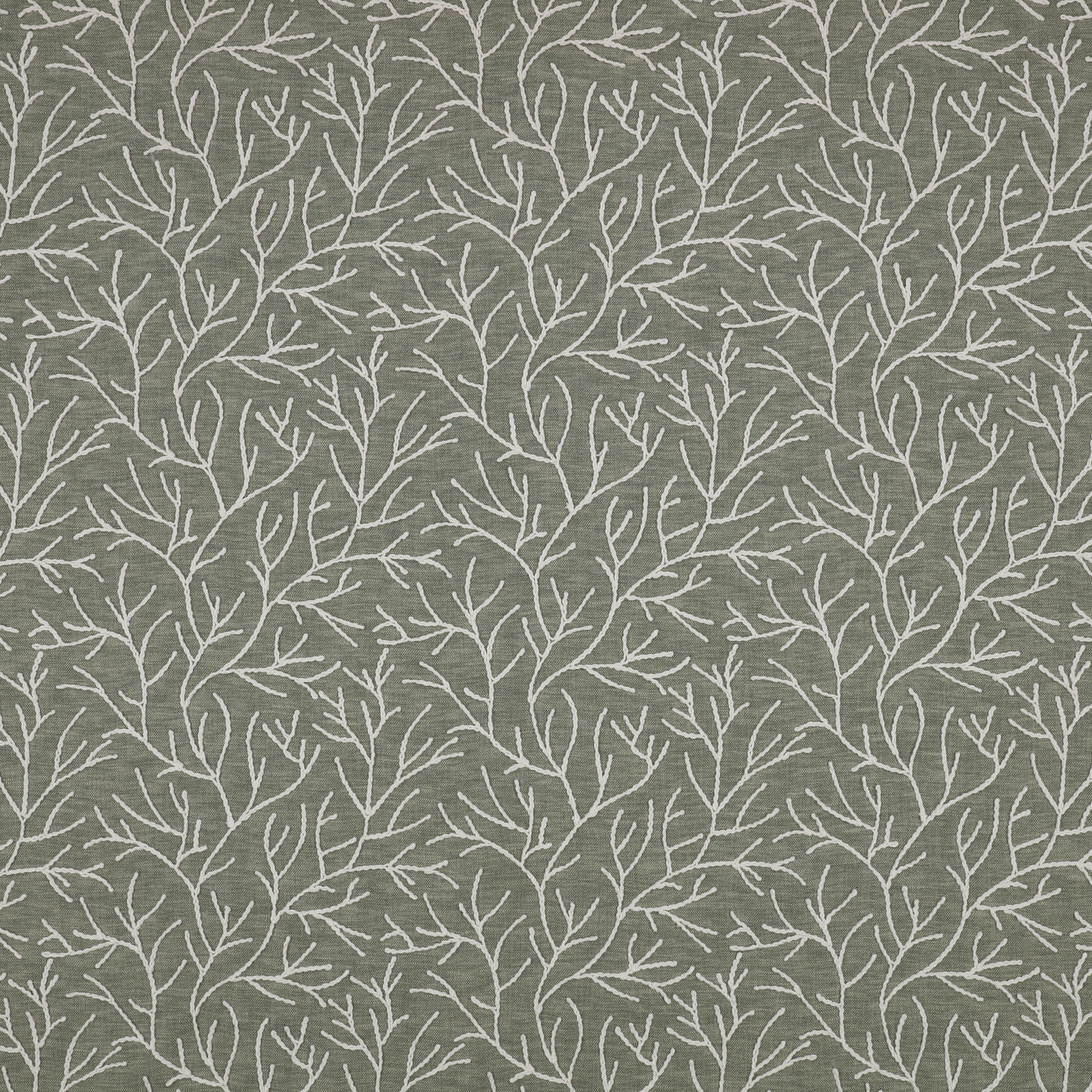 Cerelia vermittelt das Gefühl von traditioneller Crewel-Arbeit, da die Stickerei auf dem oberen, weich strukturierten Stoff sitzt. Diese Kordelstickerei beschreibt ausladende Wedel und präsentiert sich in tiefen, und vielseitigen neutralen Farben wie erdigem Grün und dunklem Blau.