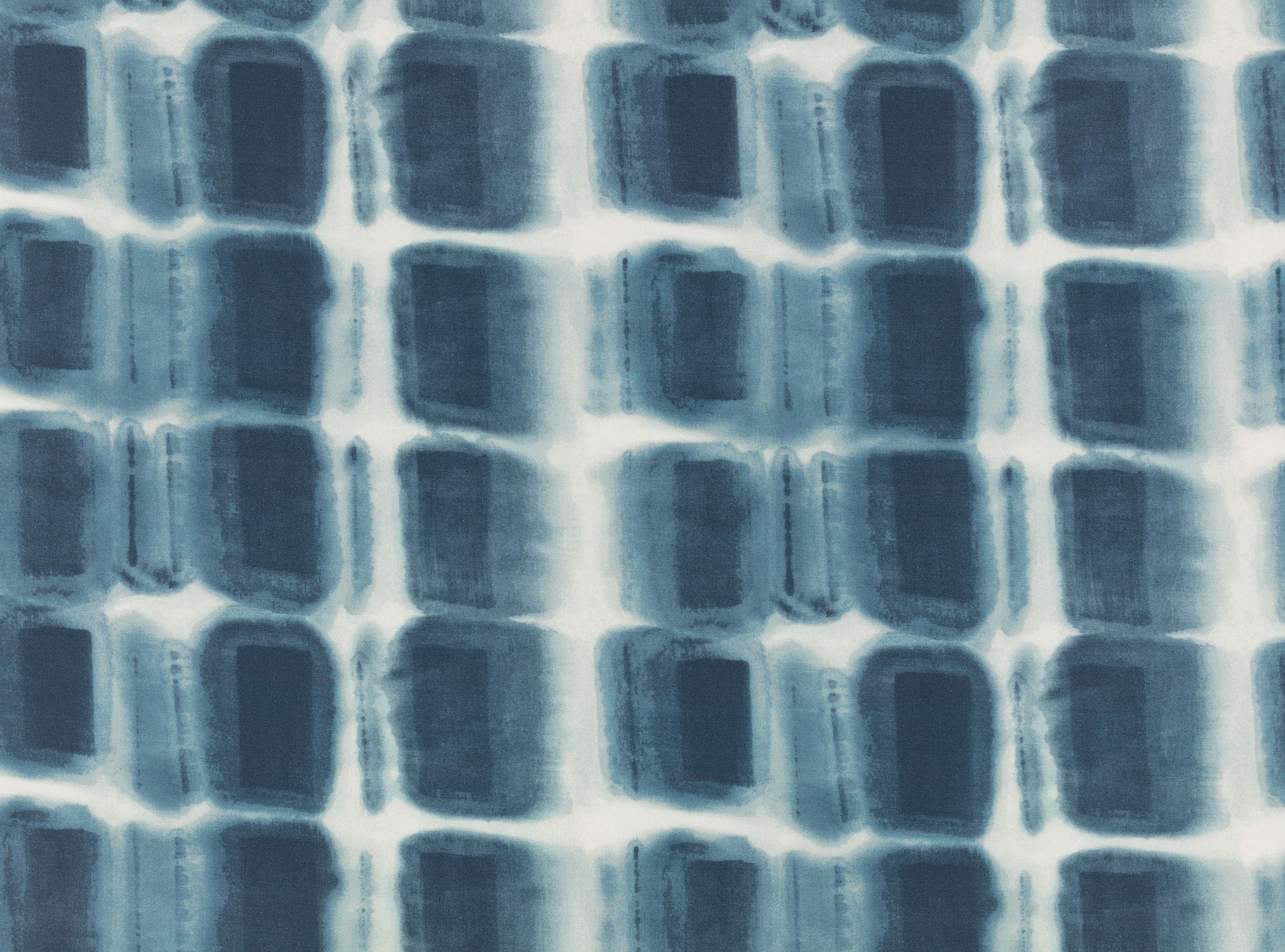 Dieser kunstvolle Outdoor-Druck ist ein Design im Batik-Stil, das die Schatten von Marmorfliesen repliziert, die sich auf einer Pooloberfläche spiegeln.