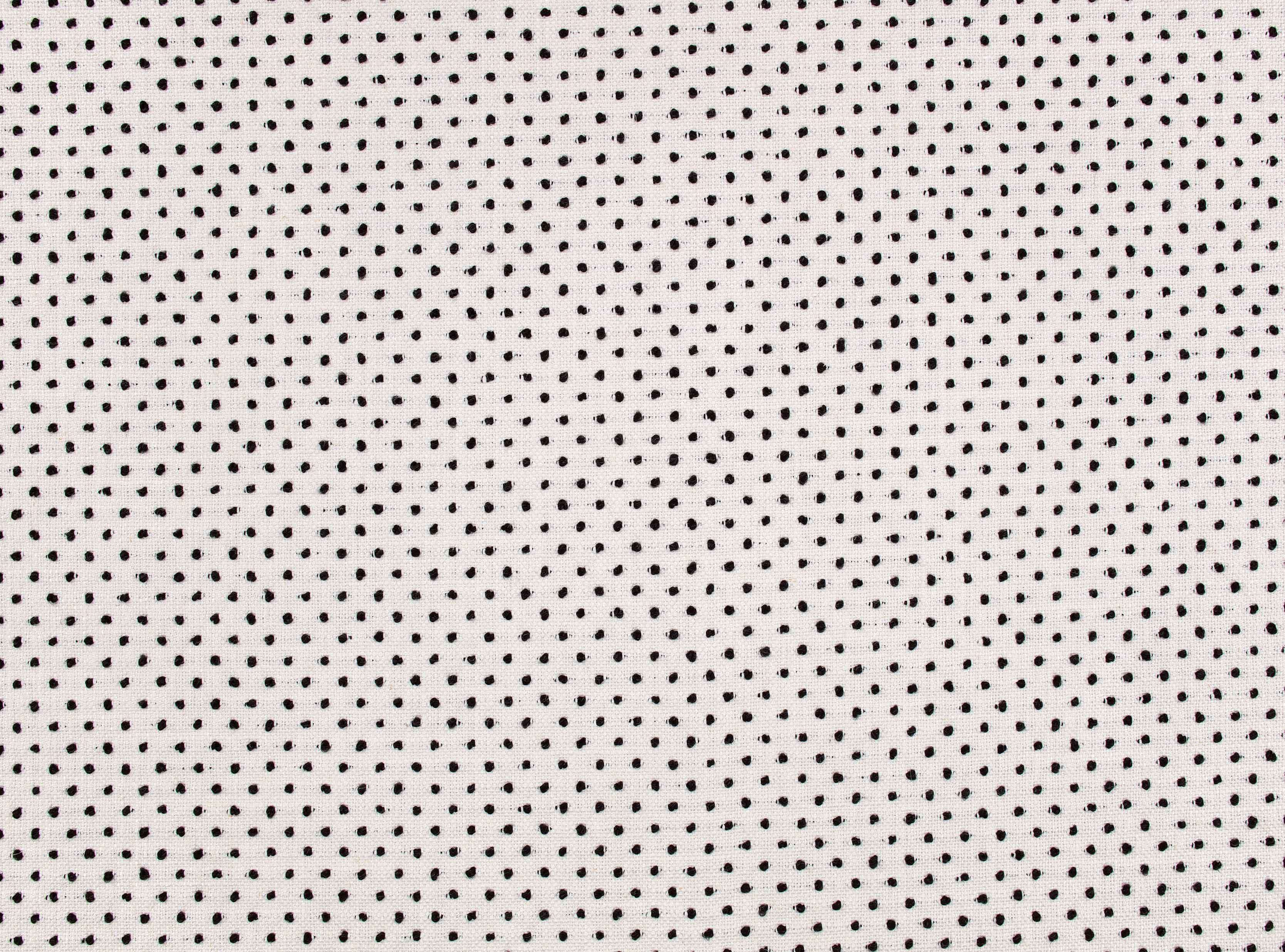 Ein klassischer schwarzer Polka Dot unterstreicht eine frische weiße Leinenmischung, und schafft Dimension und Textur für maximale Wirkung.