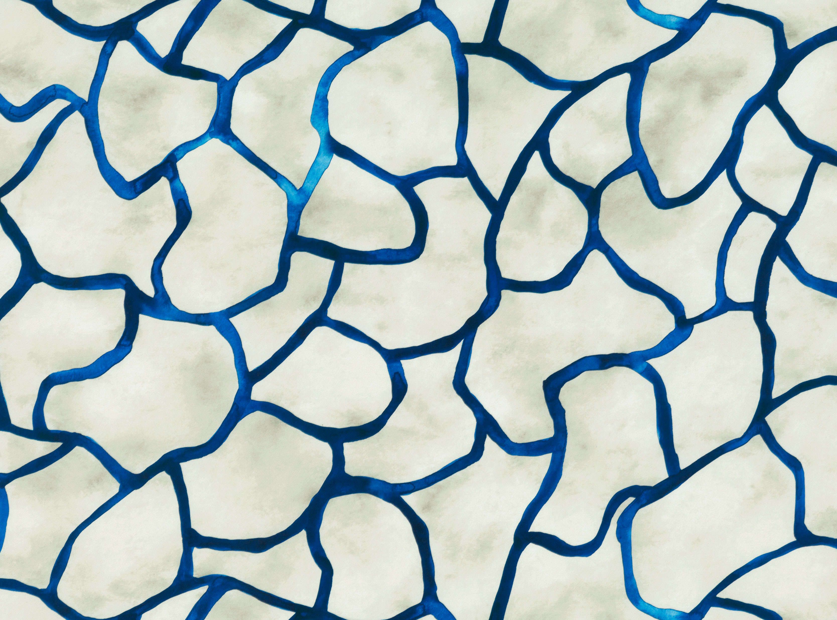Erinnernd an den gesprenkelten Grund des Swimmingpools im Tenuta Borgia, und die raffinierten Kurvenlinien der Hausdächer auf der Insel Pantelleria, erhält dieser handgemalte, zweifarbige Outdoor Druck eine dekorative, malereiartige Qualität.