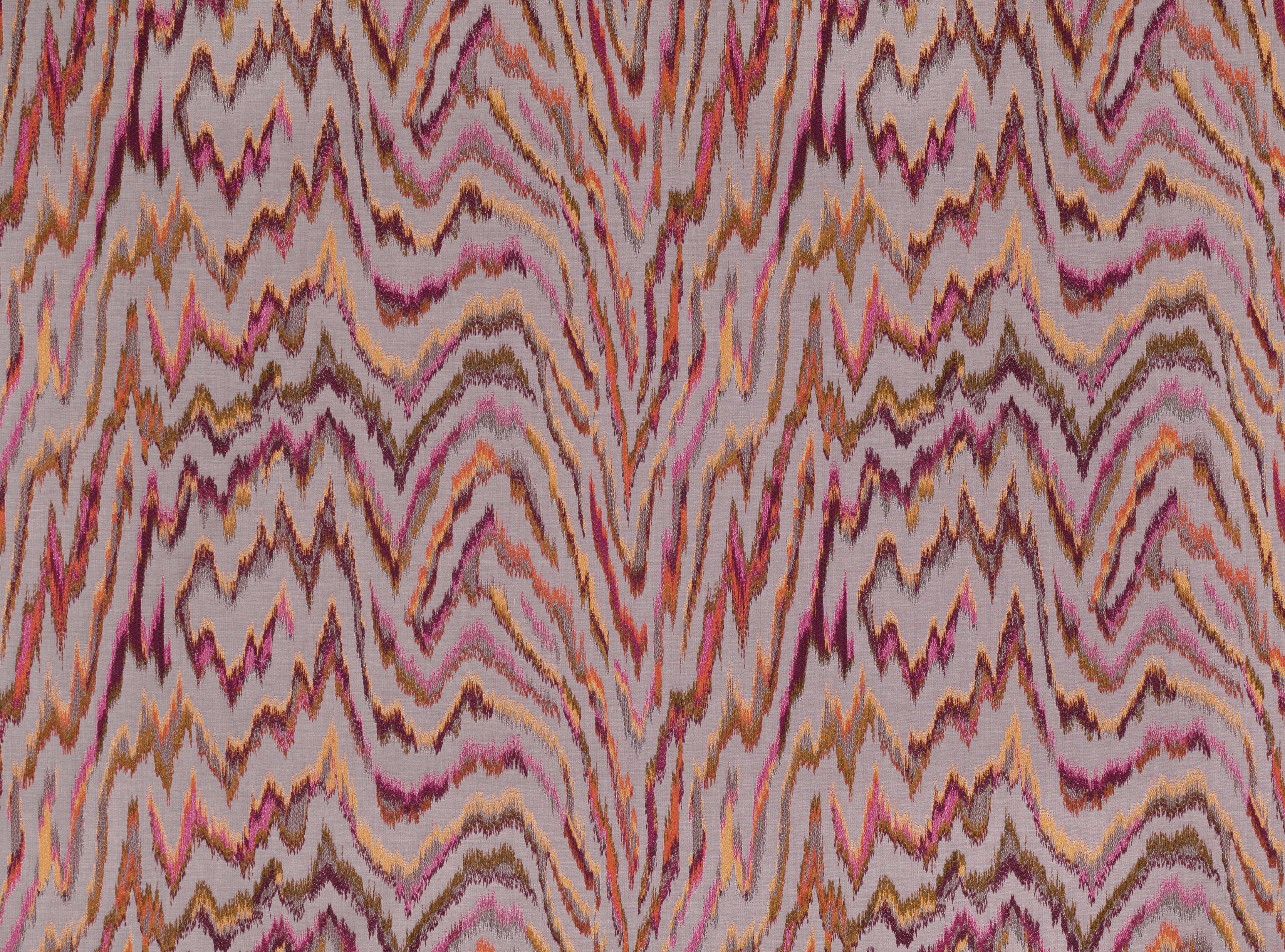 Organisches Allover Design mit Flammenstich, das auf raffinierte Art eine zarte Stickerei nachahmt, und gleichzeitig den praktischen Aspekt eines Jacquard bietet. Das außergewöhnliche Design kommt in einer Palette von Komplementärfarben von neutralen bis hin zu lebhaften Tönen.